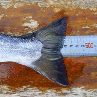 サツキマス 46.0cm/1.27kg アングラー 真栄田 敬紀さん データ 時間 4月28日午前11時30分頃 場所 箒の鼻沖 天候 曇り 風 北東4m/s 気温 15℃ 水温 15℃ ボート釣り トローリング ルアー/ウッドベイト9FTブルーバックワカサギ