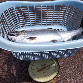 ヤマメ(サクラ・サツキ)の部、年間大物賞に登録申請がありましたので報告します。 サクラマス 48.5cm/1.50kg アングラー 杉本吉史さん データ 時間 5月10日午前10時30分頃 場所 プリンスホテル沖 天候 晴れ 風 北東5m/s 気温 15.5℃ 水温 14.1℃ ボート釣り トローリング ルアー/オクダルアーツノ銀箔貼り